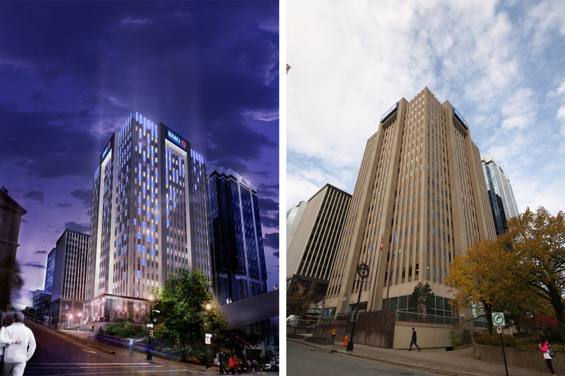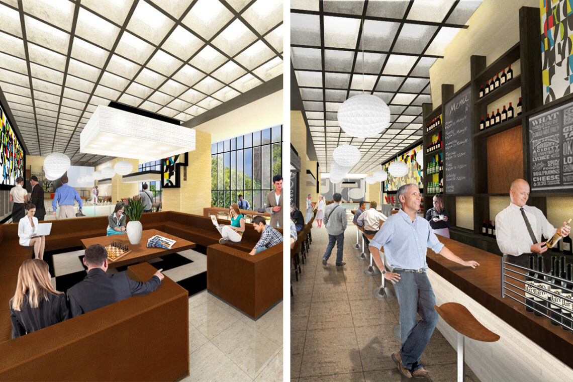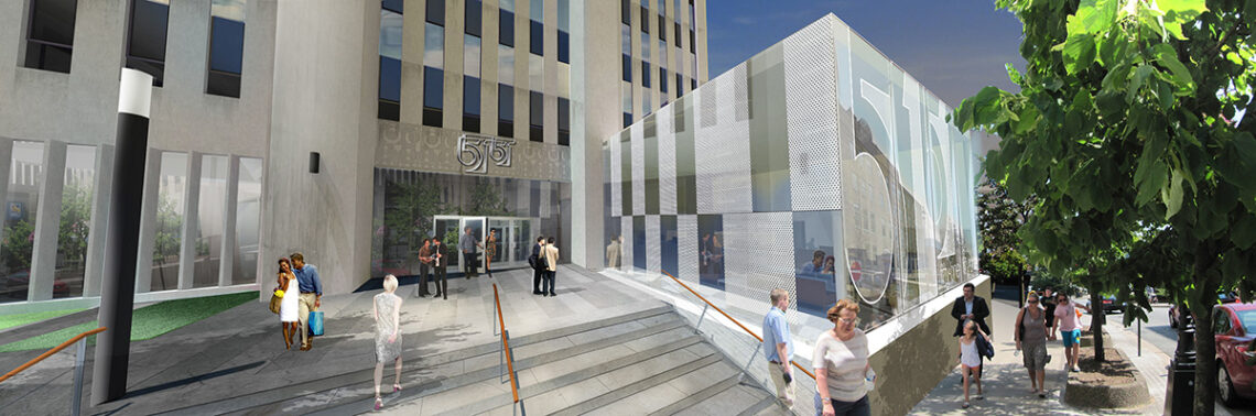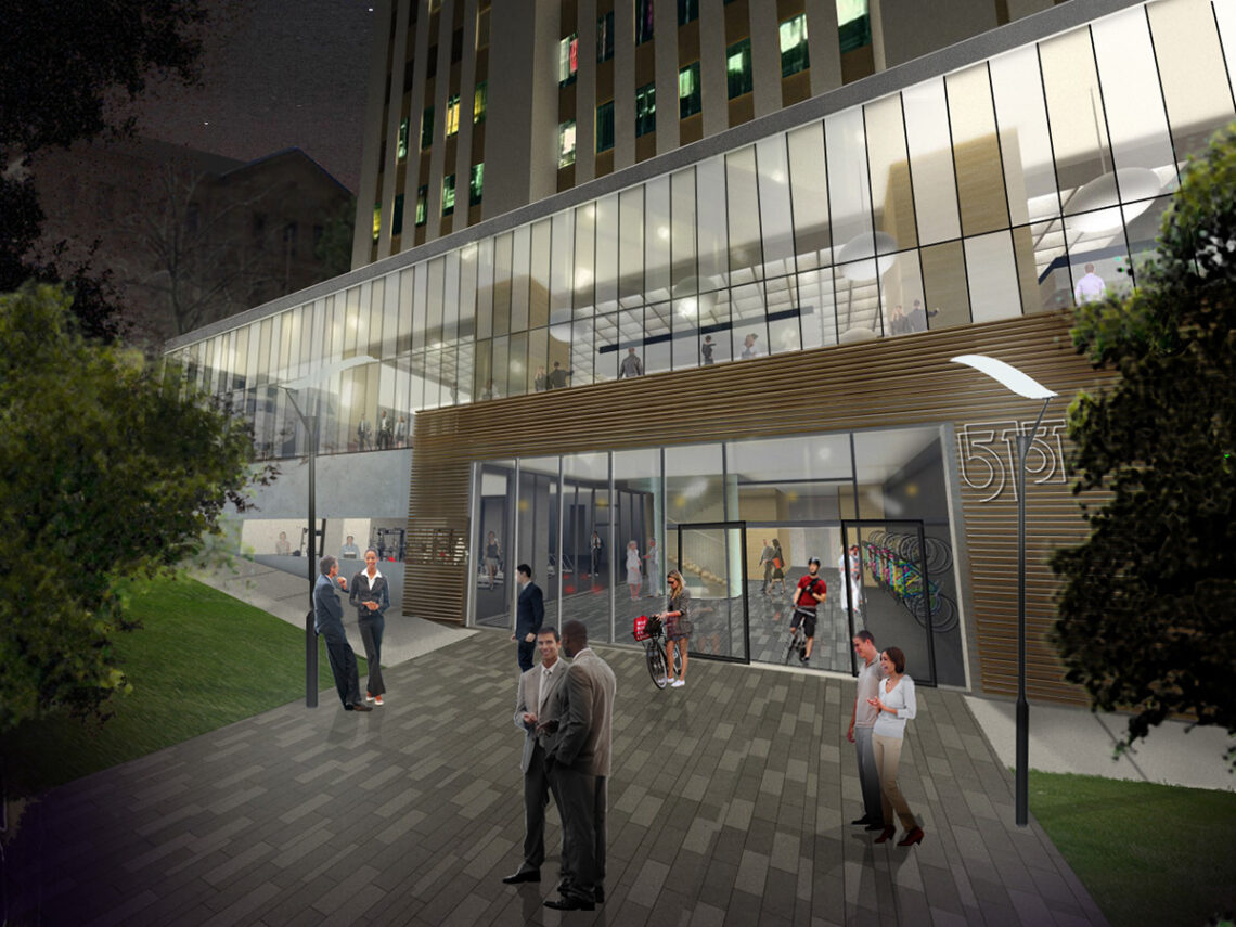 Older building stock did not have always give street level spaces the love they deserve, as was the case with this handsome bank tower.  We revisioned the common spaces and ground level entrances as well as adding some zing to the facade with glowing spandrel panels and well-placed lighting.