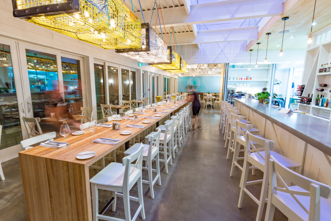 It was important to hit a balance between honouring the long history of this uniquely quaint restaurant (which literally sits over the ocean waves) and providing a contemporary dining experience in a new building that would act as the hub of the resort.